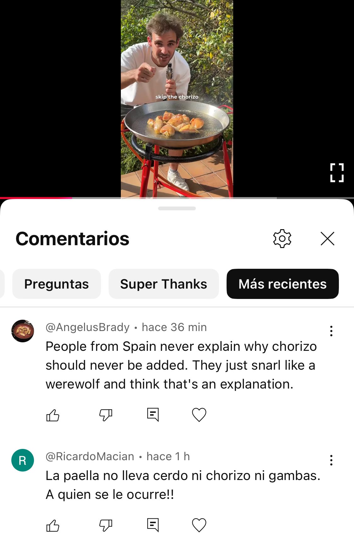 Despite the aggressive tone (I didn’t even know what “snarl like a werewolf” meant, but I’m thankful I learned it now because I will definitely use it a lot 😂)... this guy is right. My bad, I guess. I had honestly never thought I needed to explain why skipping chorizo in paella. My instant reaction was, indeed, snarling like a mf werewolf...